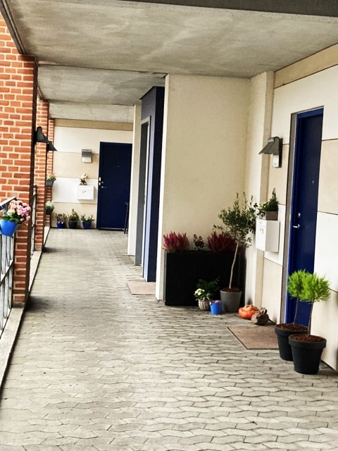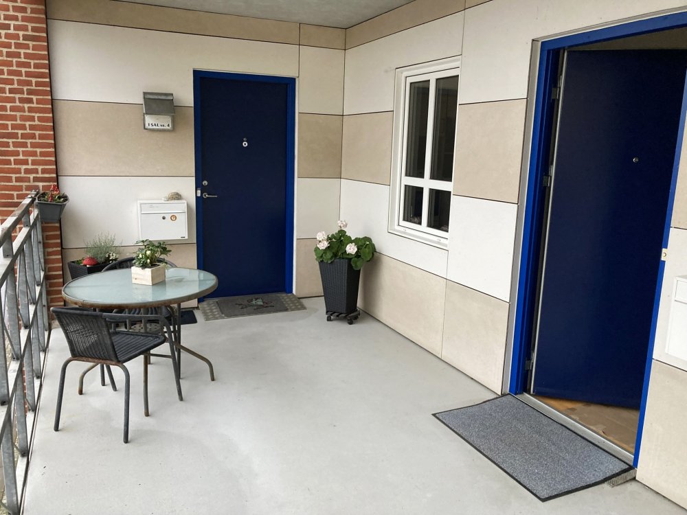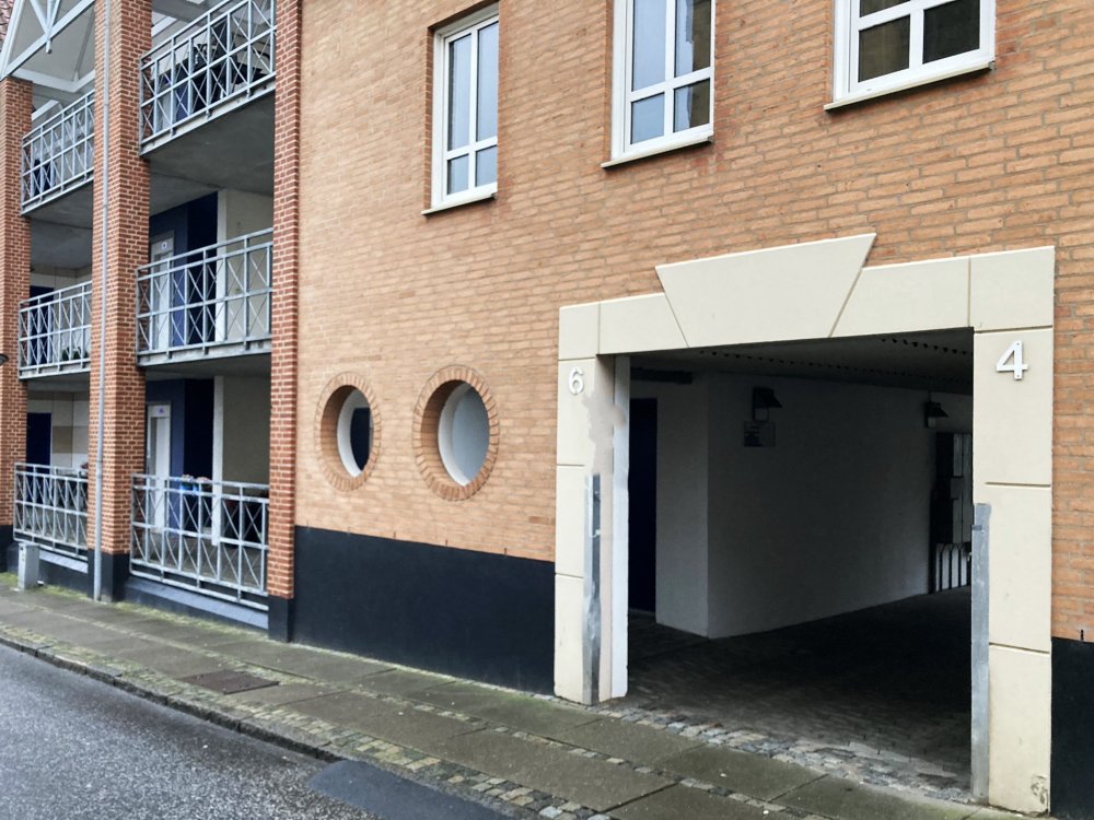 2 værelses lejligheder i forskellige størrelser mellem 64 og 81 kvadratmeter. Beliggende tæt på gågade, butikker og kirke (Skibsgade 4 - 6). Ejendommen har hyggelige svalegange og gårdmiljø med mulighed for parkering. Der er elevatorer. Det er lyse og rummelige lejligheder. De har enten altan, en lille terrasse eller en fransk altan. Der er plads til egen vaskemaskine og tørretumbler. Som en del af fællesarealerne er der gæsteværelse, som beboerne kan leje til sine gæster. Ejendommen er bygget i 1998.
